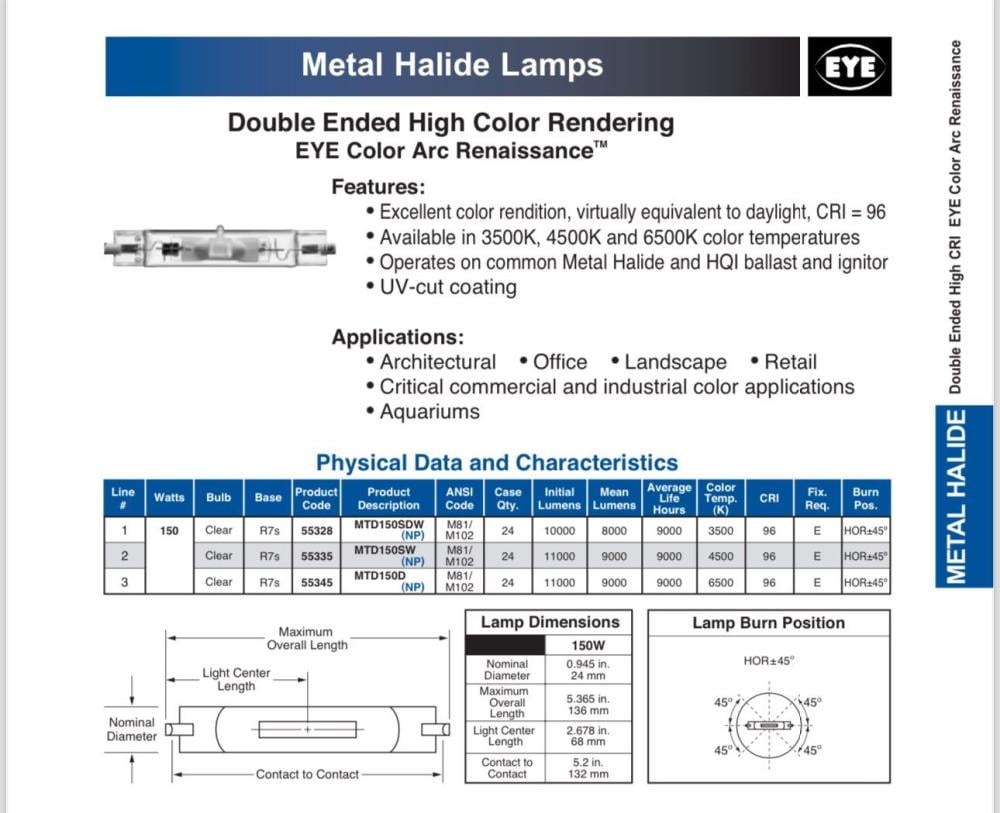لمبة ميتال هاليد EYE MTD150SW-7S/4500K